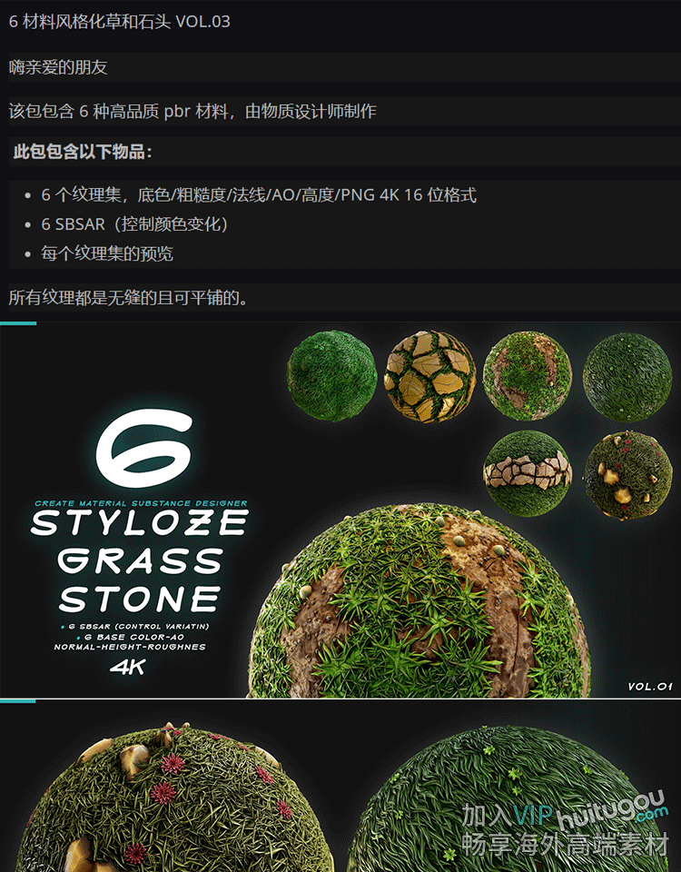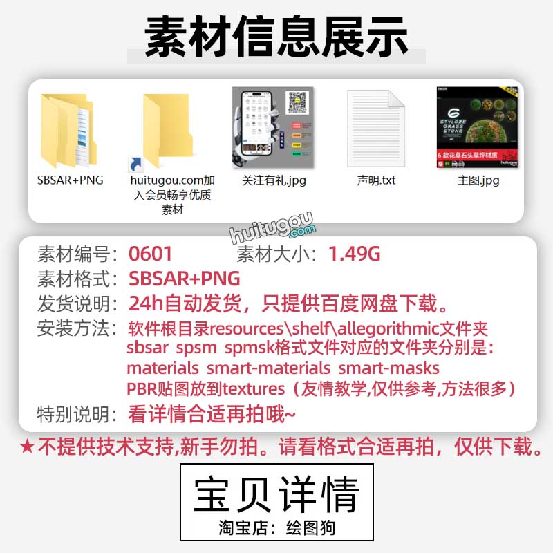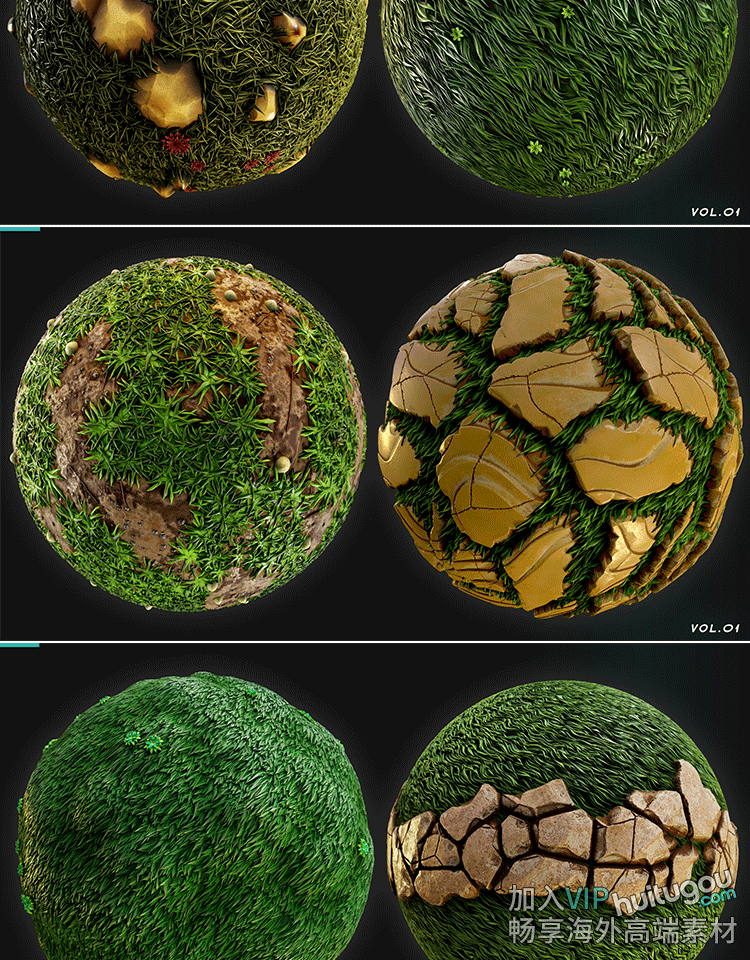 SP/Pt/SD材质6款风格化花草石头草坪地面sbsar材质球带PBR纹理图