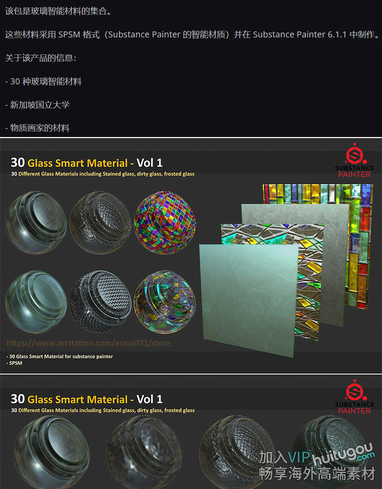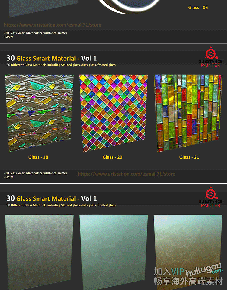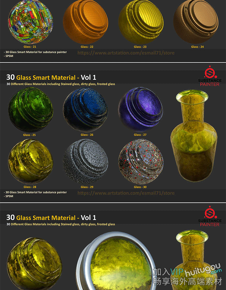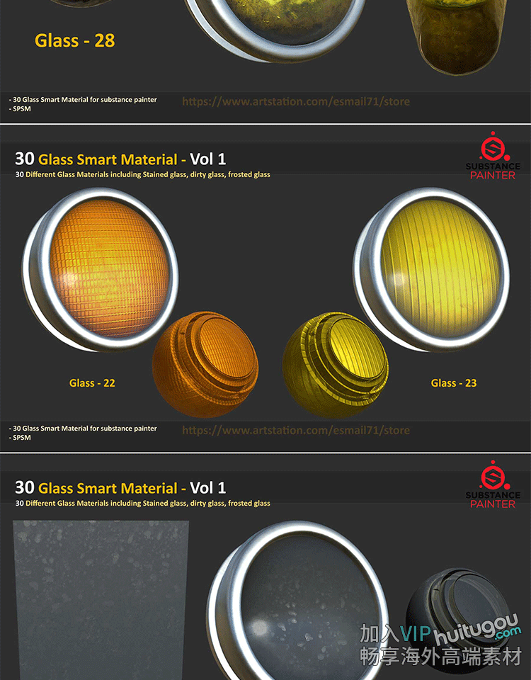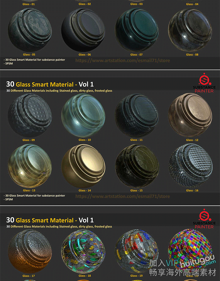 SP/Pt智能材质spsm文件30款彩色透明玻璃水晶智能材质球PBR素材