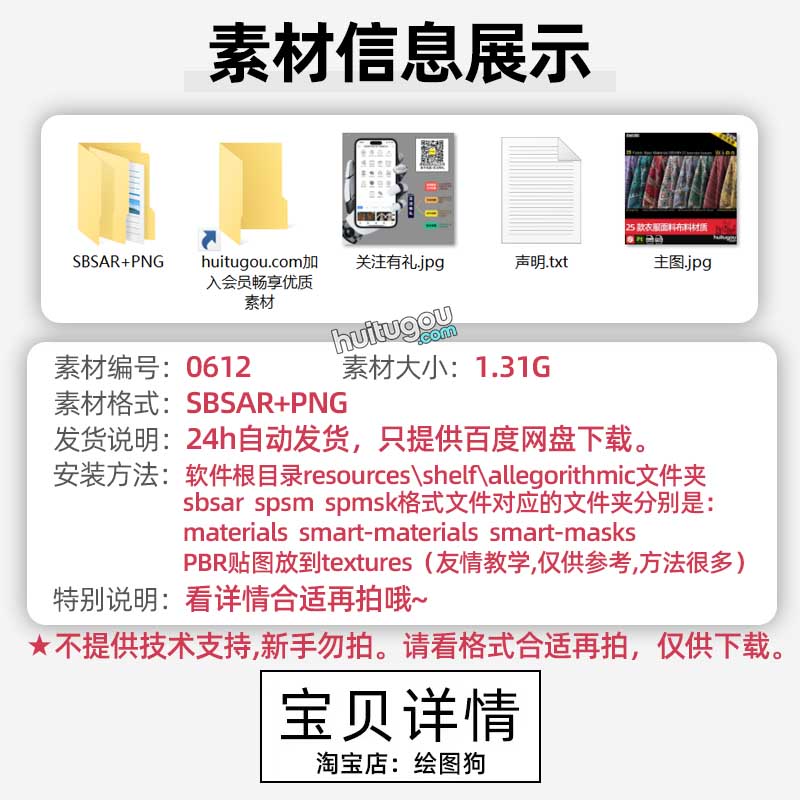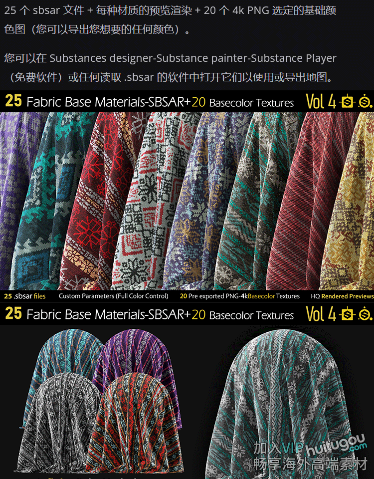 SP/Pt/SD基本材质sbsar素材25款衣服面料碎花布料材质球png纹理图
