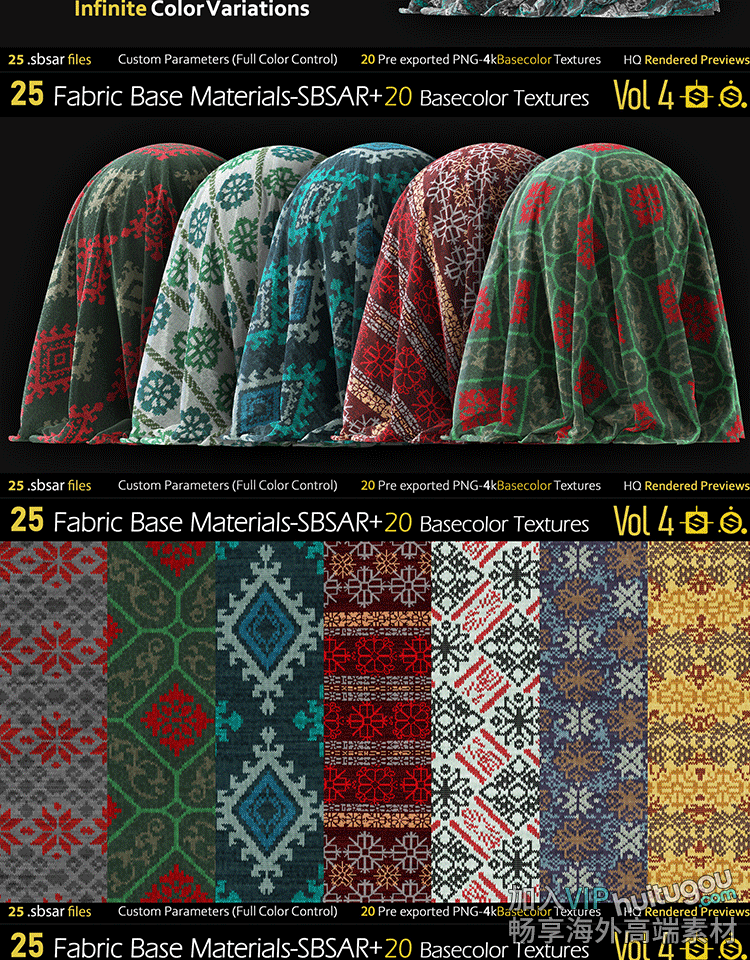 SP/Pt/SD基本材质sbsar素材40款古埃及花纹织物面料材质带png贴图