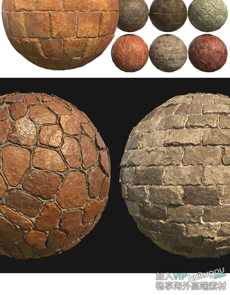 SP/Pt智能材质spsm素材10款砖砌路面墙面智能材质球带png纹理贴图