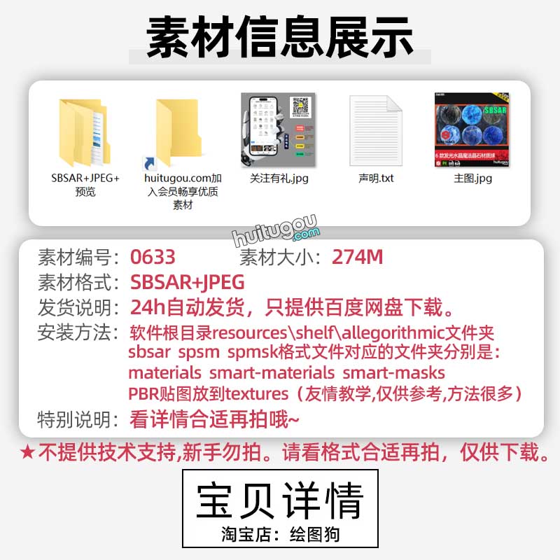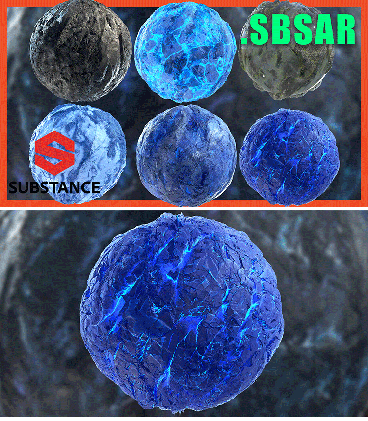SP/Pt/SD基本材质sbsar文件6款发光水晶魔法能量晶石材质球带贴图