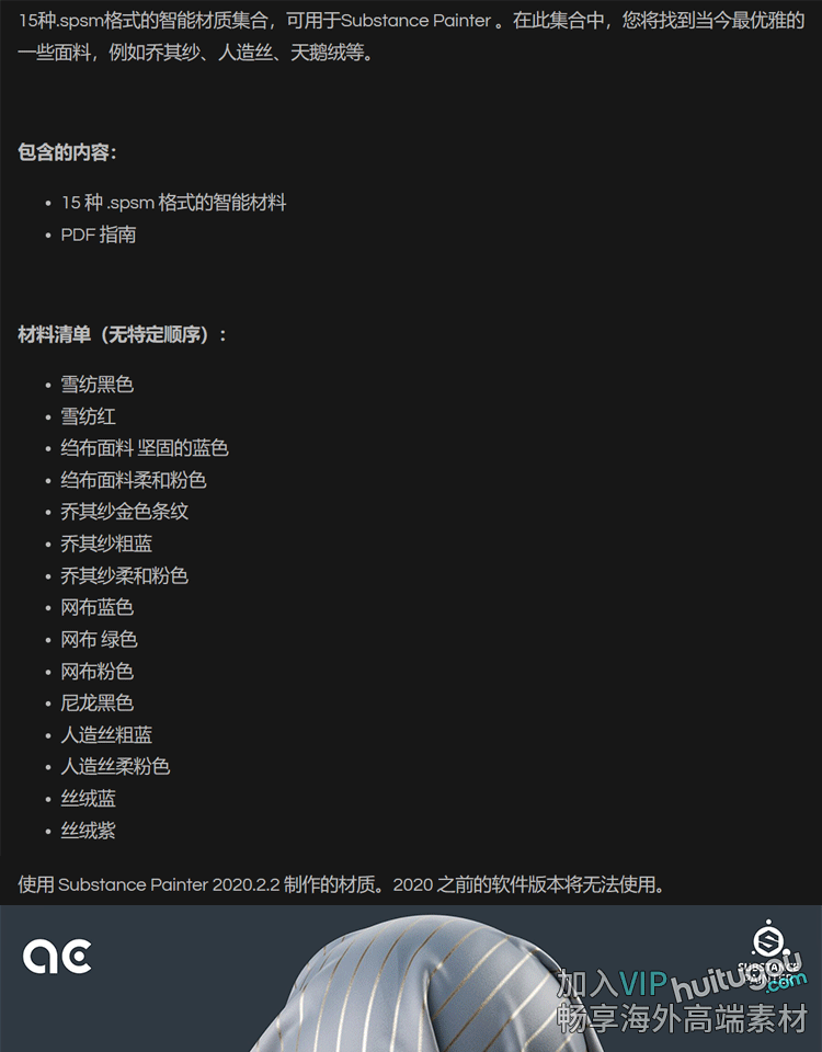 substance painter PS/Pt素材天鹅绒布料智能材质球spsm格式SPP