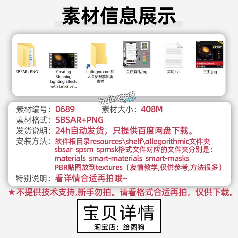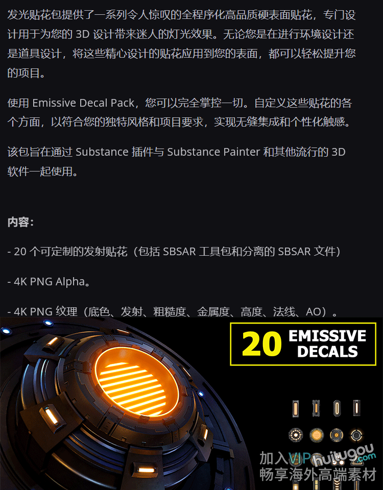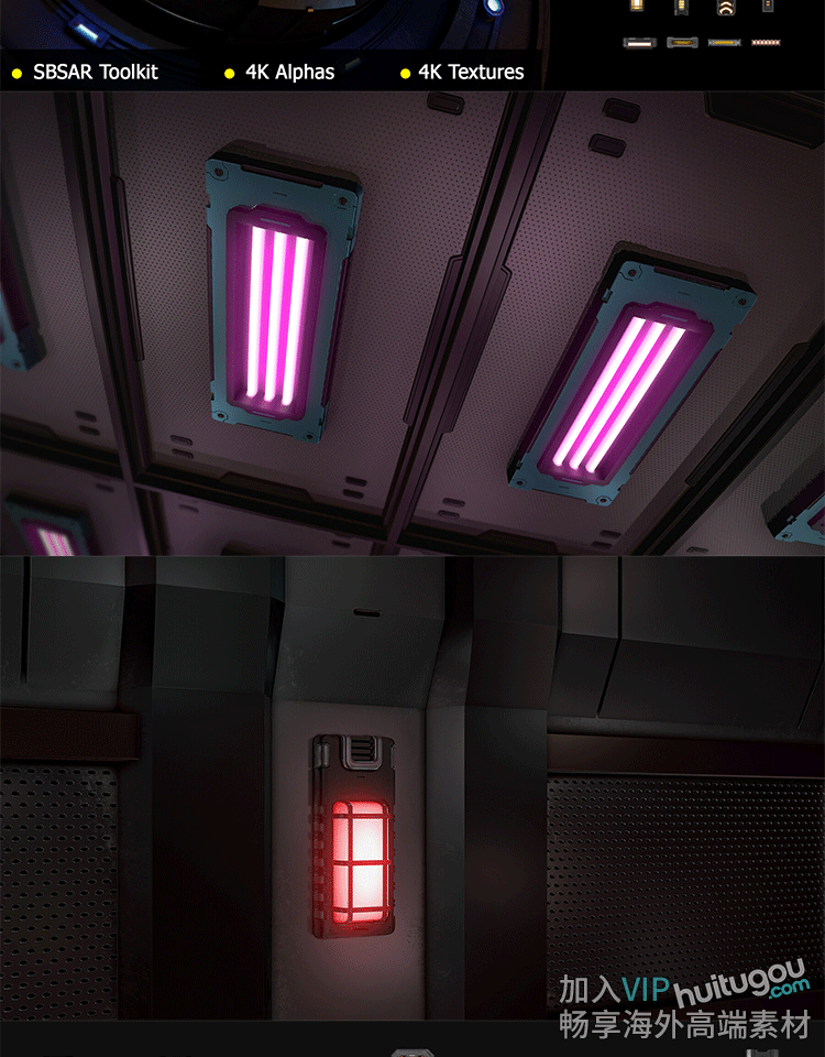 SP/SD/Pt/DS材质sbsar素材20款硬表面霓虹发光贴花材质带png贴图