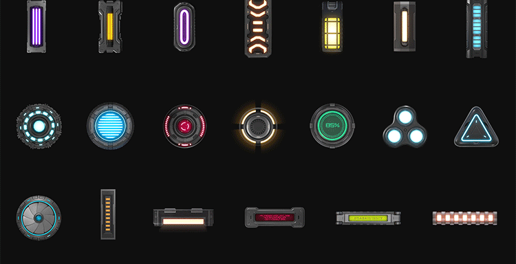 SP/Pt/SD/DS基本材质sbsar素材25款科幻硬表面矩形贴花元素材质