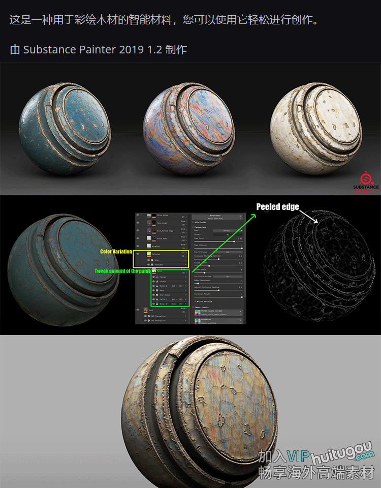 substance painter/SP/Pt素材彩绘木材木板油漆脱落智能材质spsm