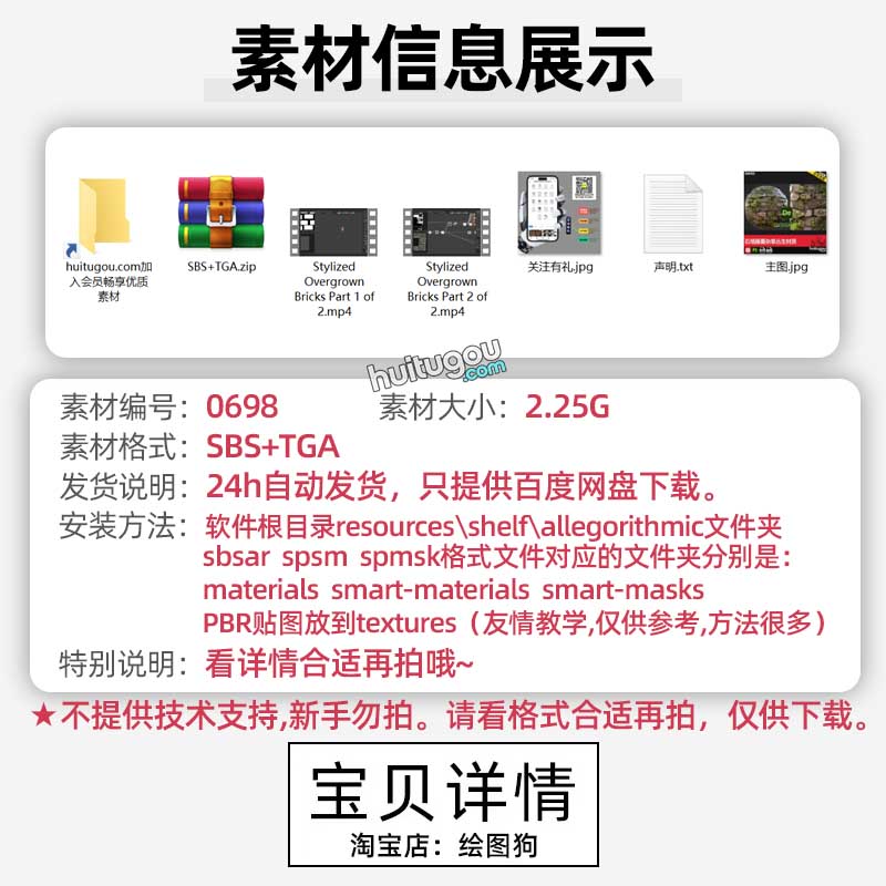 substance designer/SD/DS石墙藤蔓杂草丛生材质SBS工程tga素材