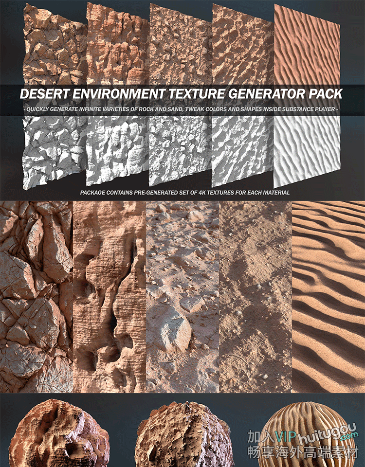 5款substance painter/SP/Pt沙漠黄土砂石sbsar材质球附带tga贴图