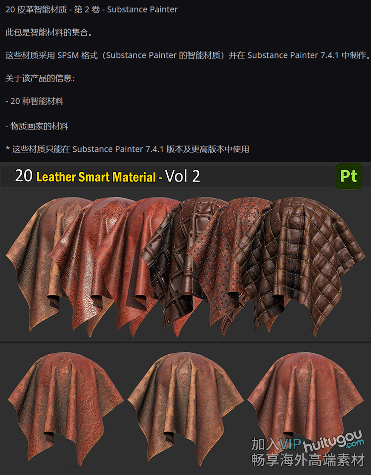 20款substance painter/SP/Pt皮革皮质皮纹智能材质spsm素材