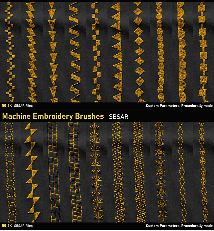50款substance painter/SP/Pt服装针织刺绣笔刷材质sbsar格式素材