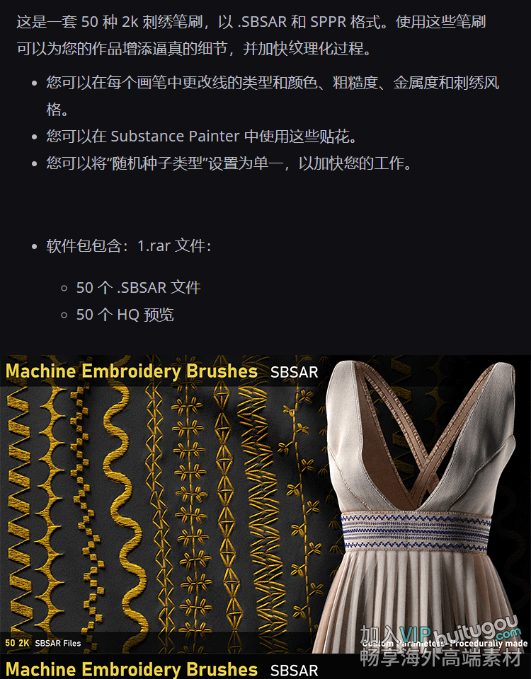 50款substance painter/SP/Pt服装绣花刺绣sbsar材质球素材