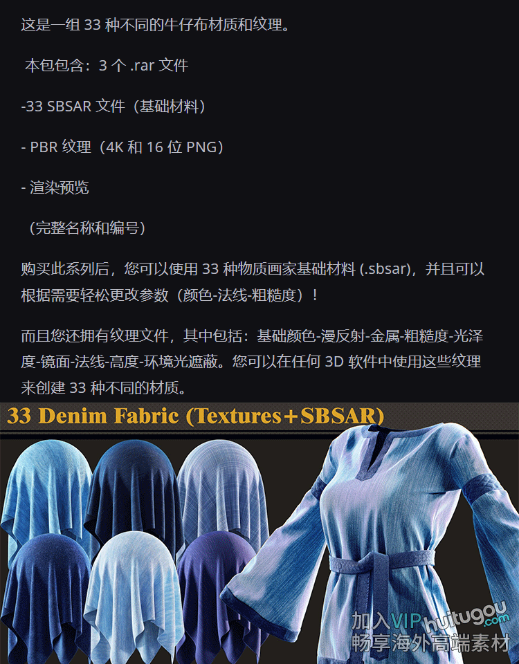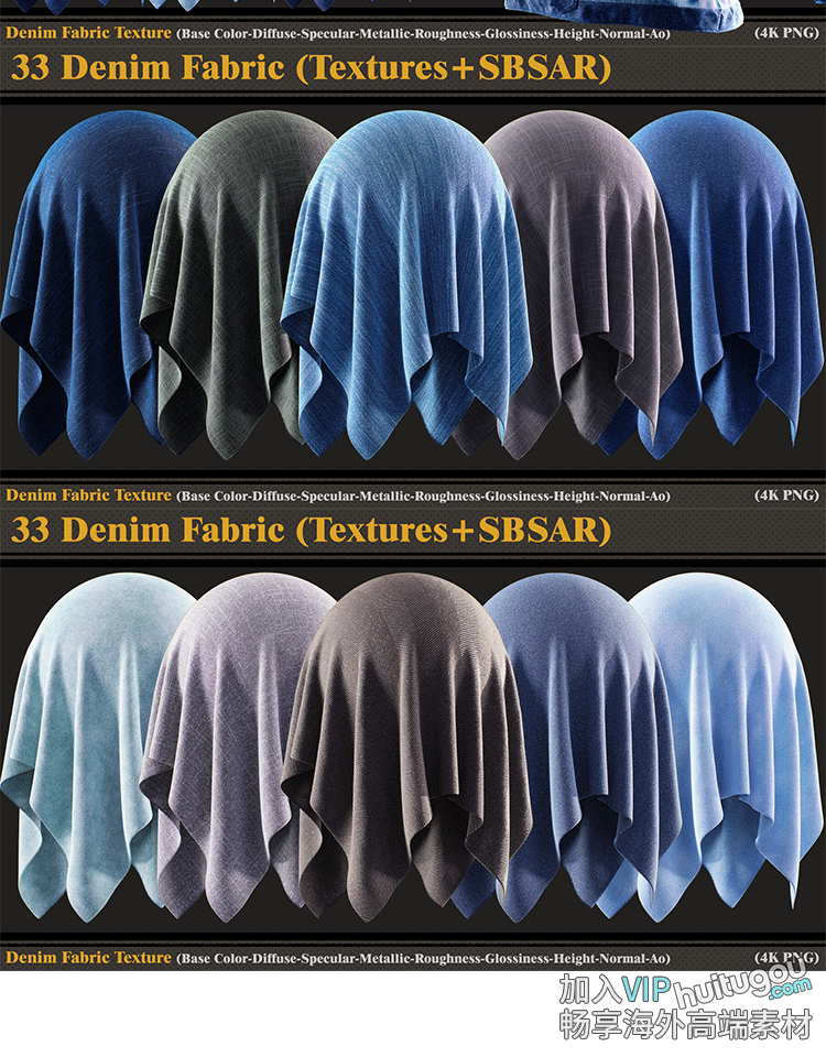 33款substance painter/SP/Pt牛仔布料sbsar材质球带png纹理贴图