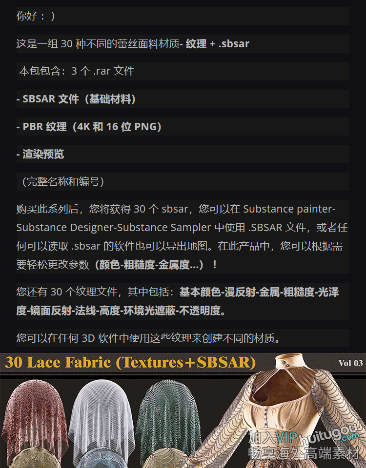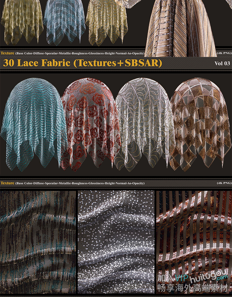 30款substance painter/SP/Pt蕾丝面料布料sbsar材质球带png贴图