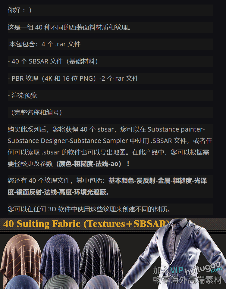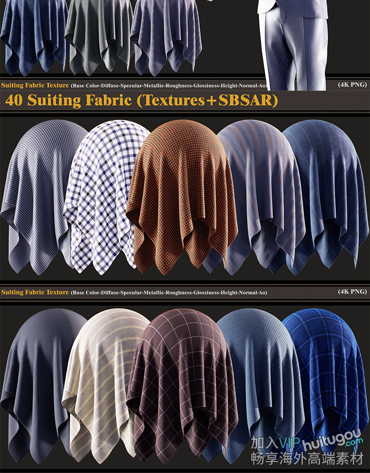 40款substance painter/SP/Pt西服西装布料sbsar材质球带png贴图