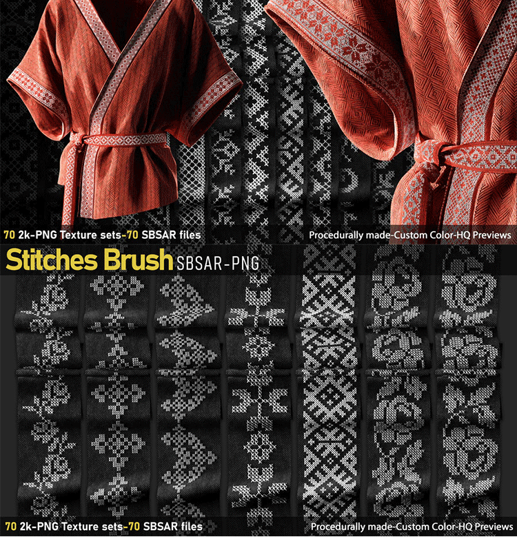 70款substance painter/SP/Pt针织刺绣sbsar材质球带png贴图素材