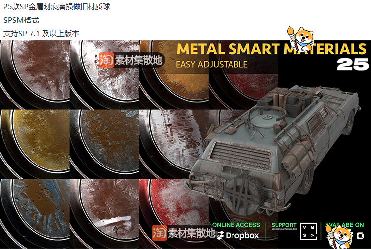 31款substance painter/SP/Pt老旧氧化金属智能材质球spsm素材