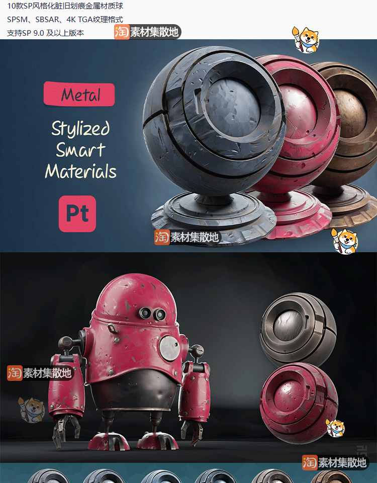 10款substance painter/SP/Pt风格化脏旧划痕金属材质带材质贴图