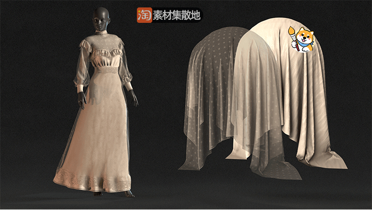 2款substance painter/SP/Pt复古婚纱布料智能材质球spsm格式素材