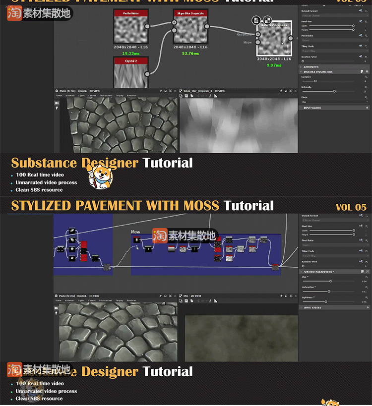 1款substance designer/SD/Ds风格化鹅卵石苔藓地面材质SBS源文件
