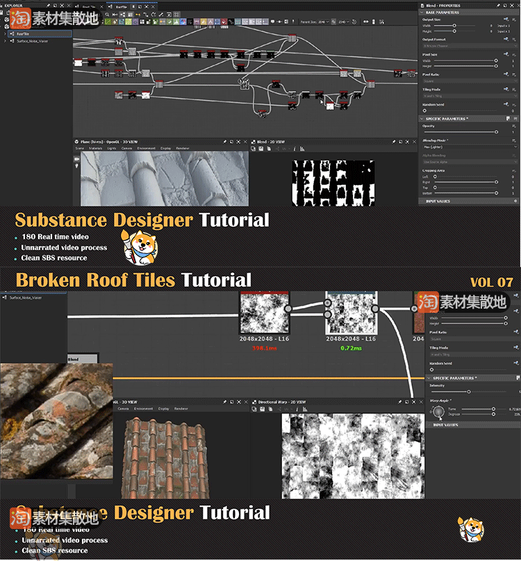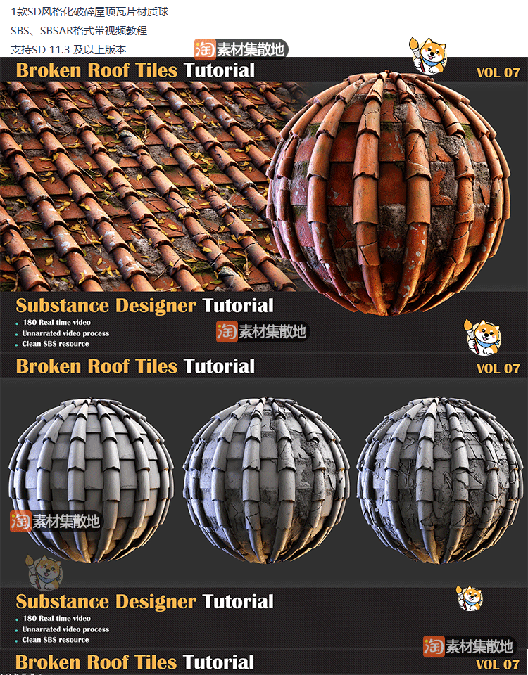 1款substance designer/SD/Ds写实凌乱瓦片屋顶材质SBS源文件素材