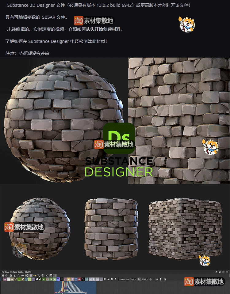 1款substance designer/SD/Ds风格化石墙砖块砖墙材质SBS源文件