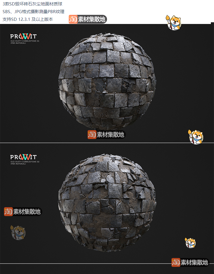3款substance designer/SD/Ds复古破烂脏旧石砖地面SBS材质带贴图