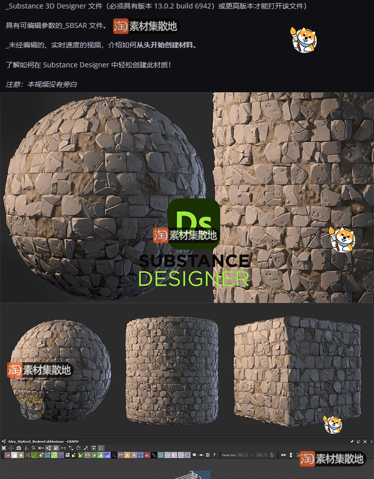 1款substance/SP/Pt/DS/SD风格化碎石墙面墙壁sbsar材质球SBS素材