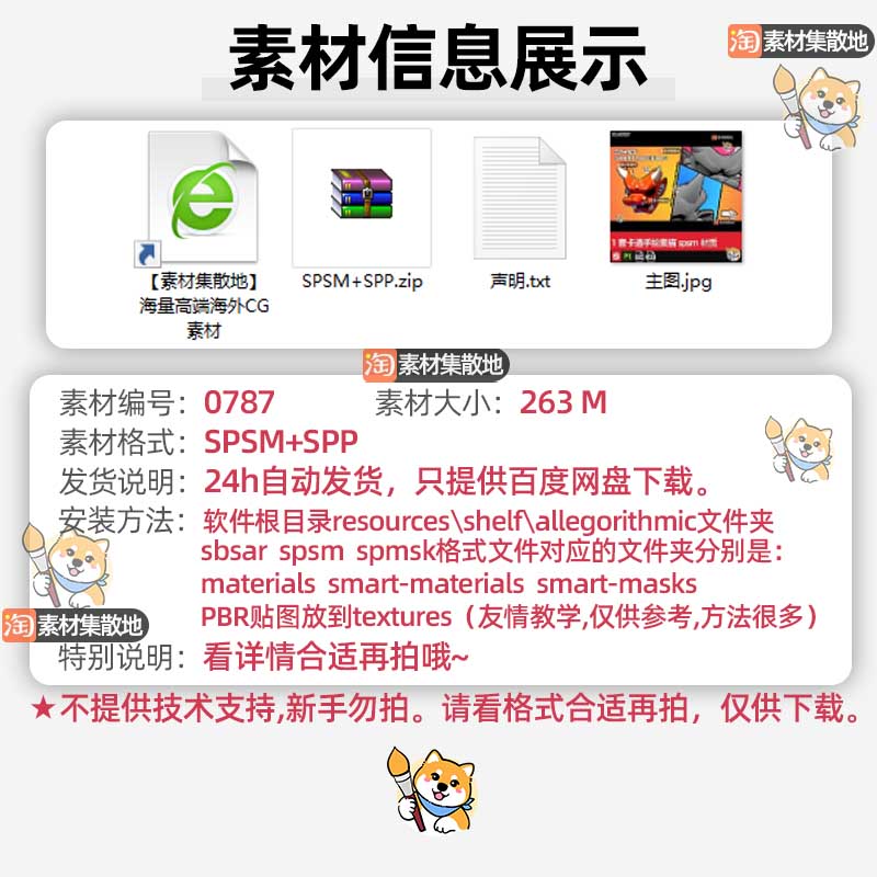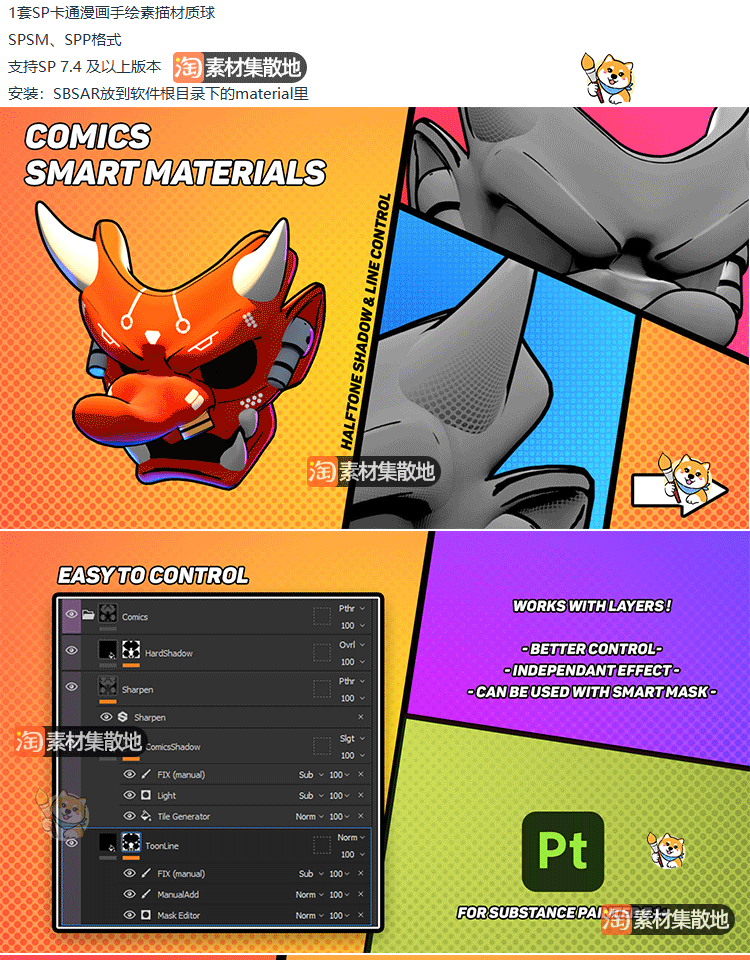 1套substance painter/SP/Pt卡通手绘素描spsm只能材质球spp文件