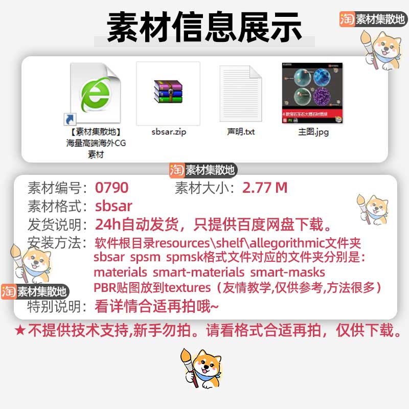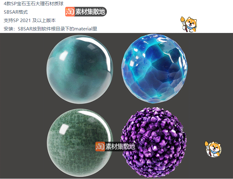 4款substance painter/SP/Pt宝石玉石大理石sbsar材质球PBR素材