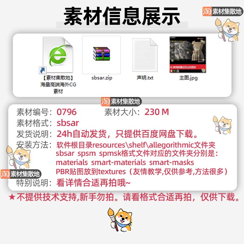 70款substance painter/SP/Pt服装衣服刺绣贴花sbsar材质球素材