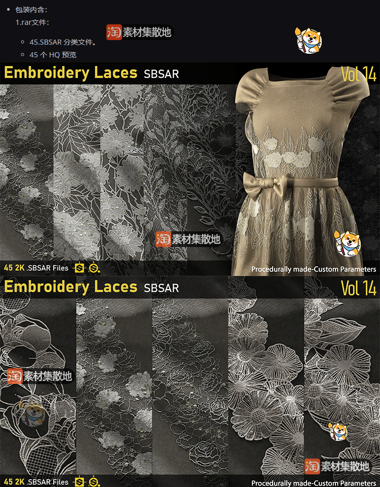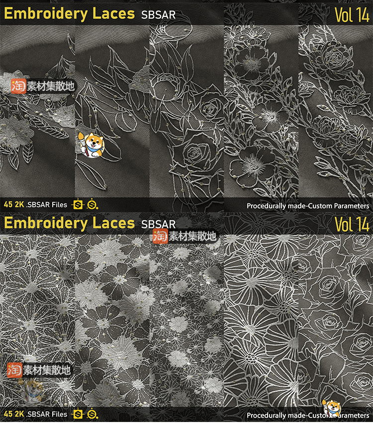 45款substance painter/SP/Pt服装布料刺绣蕾丝花边sbsar材质球