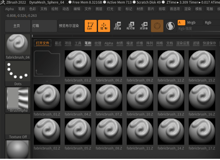 Zbrush衣服织物布料皮革褶皱折痕挤压zbp笔刷Alpha纹理ZB雕刻素材
