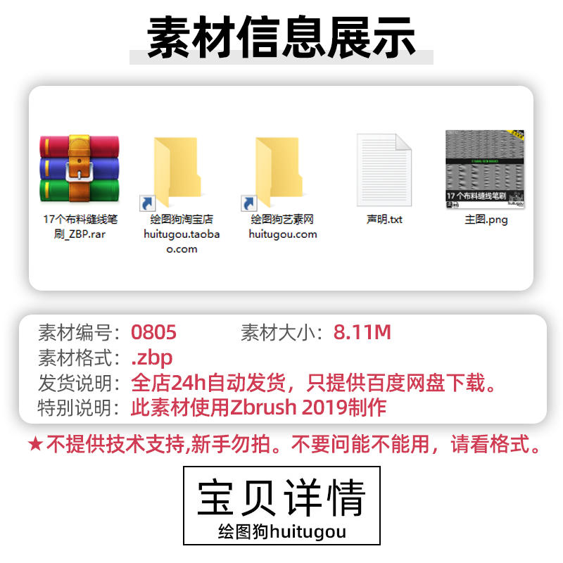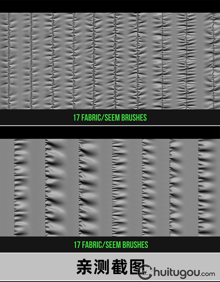 Zbrush皮革织物衣服缝合缝线笔刷ZB画笔布料缝纫建模雕刻塑形纹理