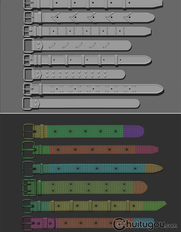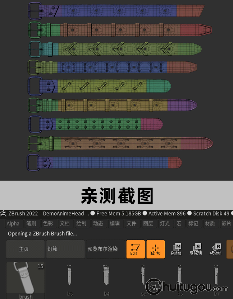 ZBrush皮带表带表扣肩带扣子IMM笔刷ZB画笔ZB建模雕刻alpha素材