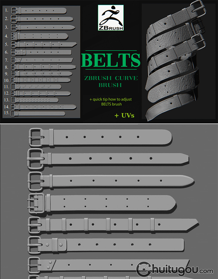 ZBrush现代风格皮带扣头腰带IMM笔刷ZB画笔zbp格式建模雕刻素材
