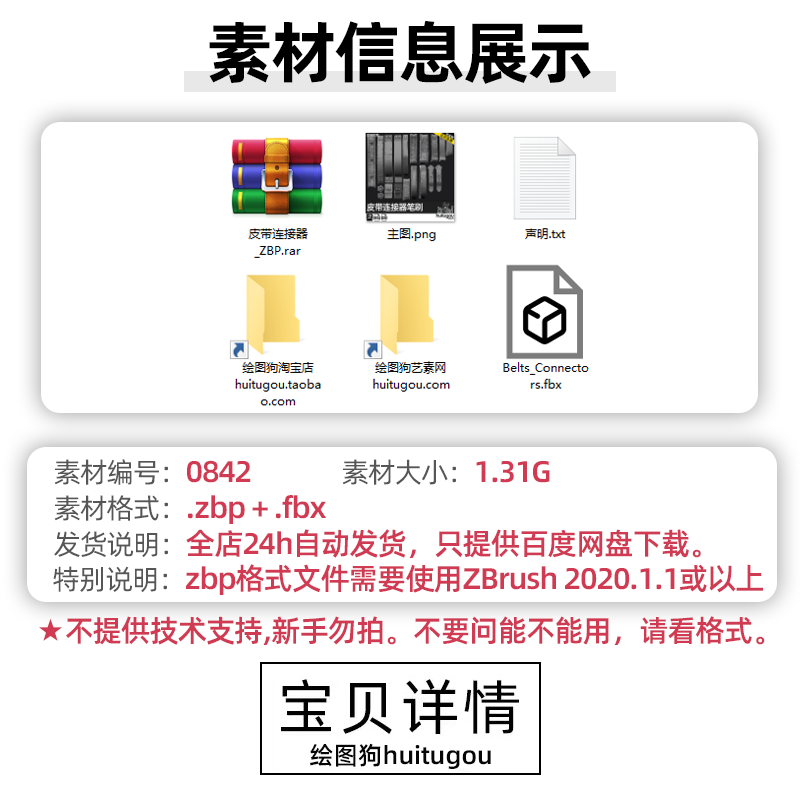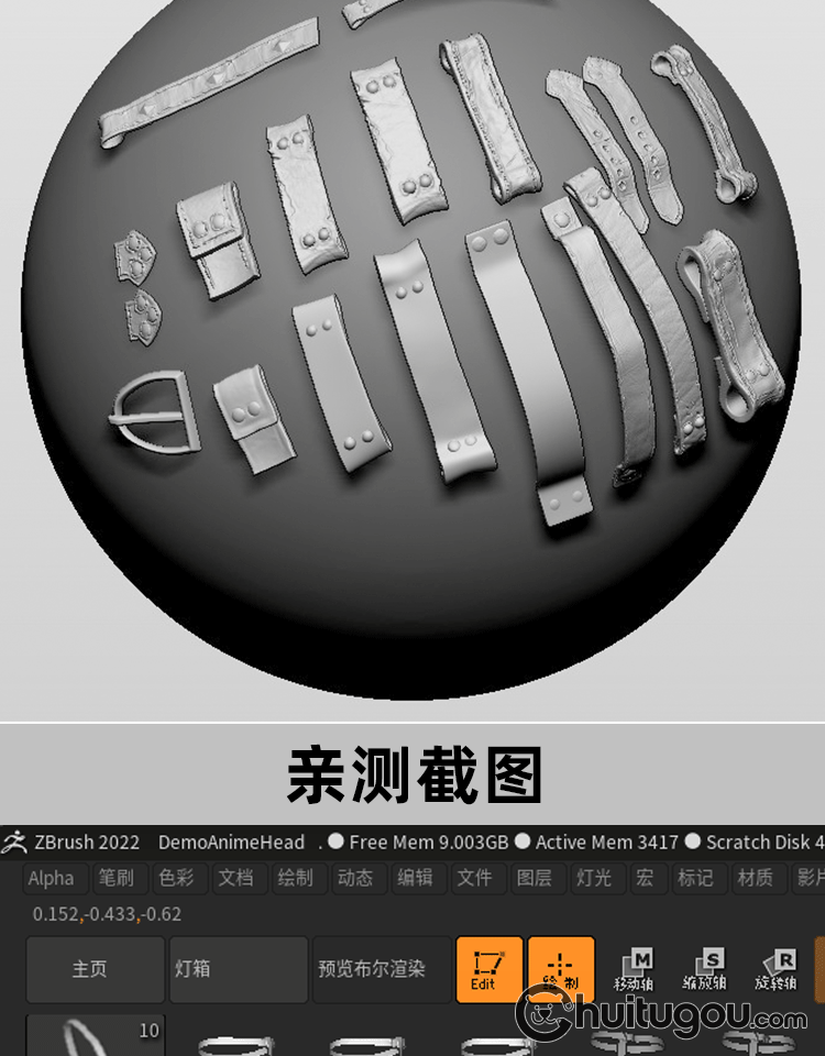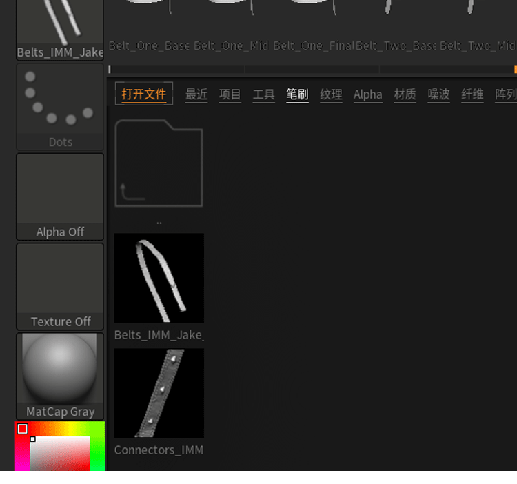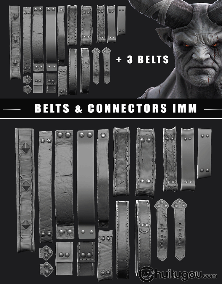 Zbrush皮带腰带连接器IMM笔刷zbp画笔ZB建模雕刻素材 附fbx模型
