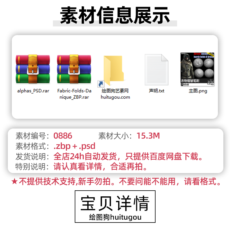 Zbrush衣服织物布料皮革褶皱折痕挤压zbp笔刷Alpha纹理ZB雕刻素材