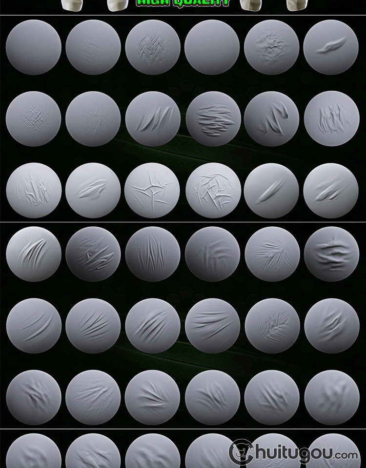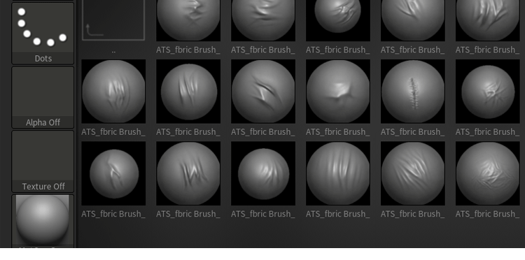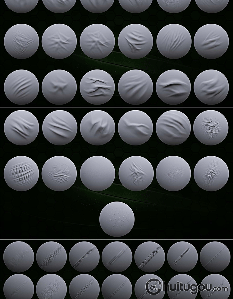 Zbrush衣服织物布料皮革褶皱折痕挤压zbp笔刷Alpha纹理ZB雕刻素材