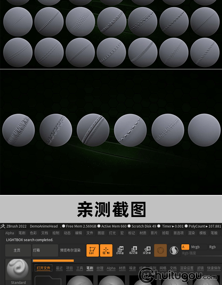 zbrush衣服布料缝线缝纫曲线IMM笔刷ZB服装针线脚雕刻zbp画笔素材
