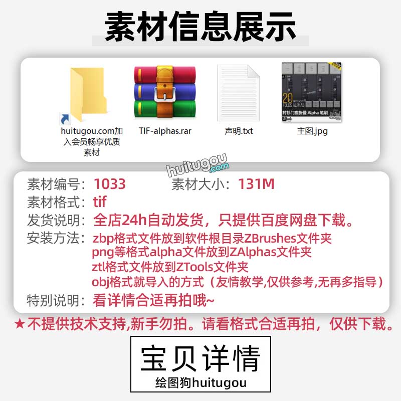 ZBrush素材40款服装衣服布料织物Alpha笔刷TIF置换纹理贴图ZB雕刻