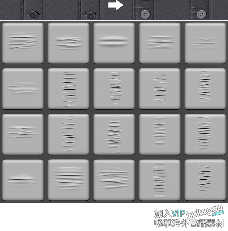 ZBrush笔刷ZB雕刻素材40款服装布料织物褶皱压痕Alpha笔刷tif纹理