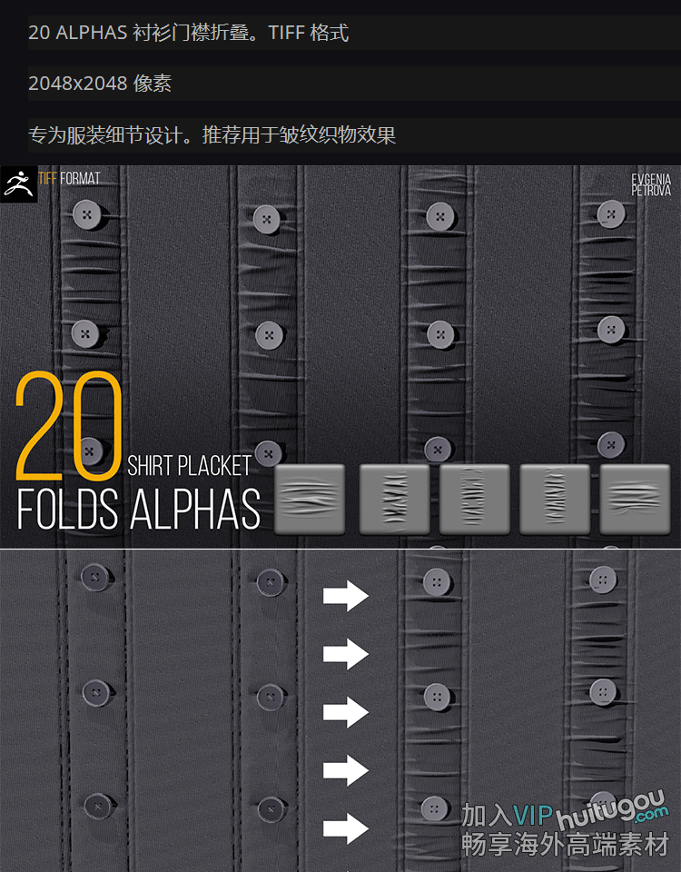 ZBrush衬衫衣襟布料褶皱Alpha笔刷20 ALPHAS SHIRT PLACKET FOLDS