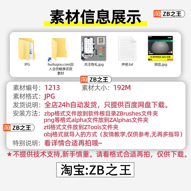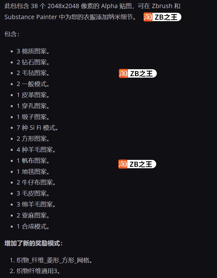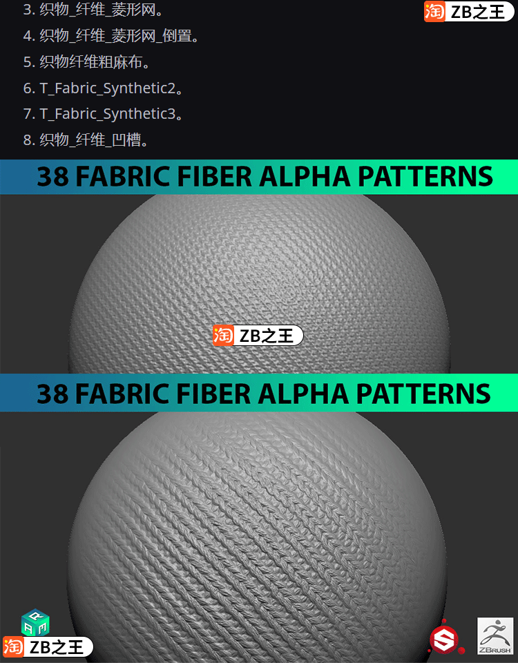 ZBrush阿尔法纹理38款织物棉麻布料Alpha贴图ZB/SP细节纹理素材