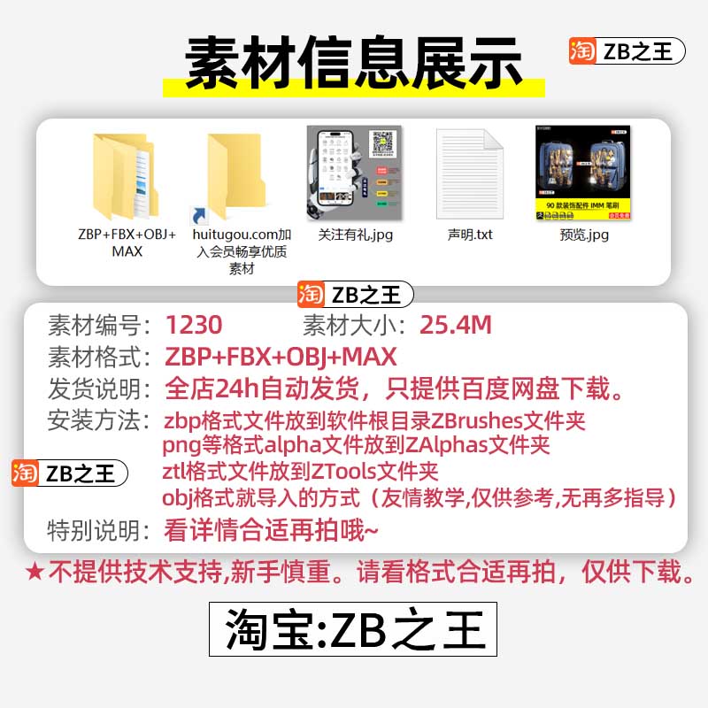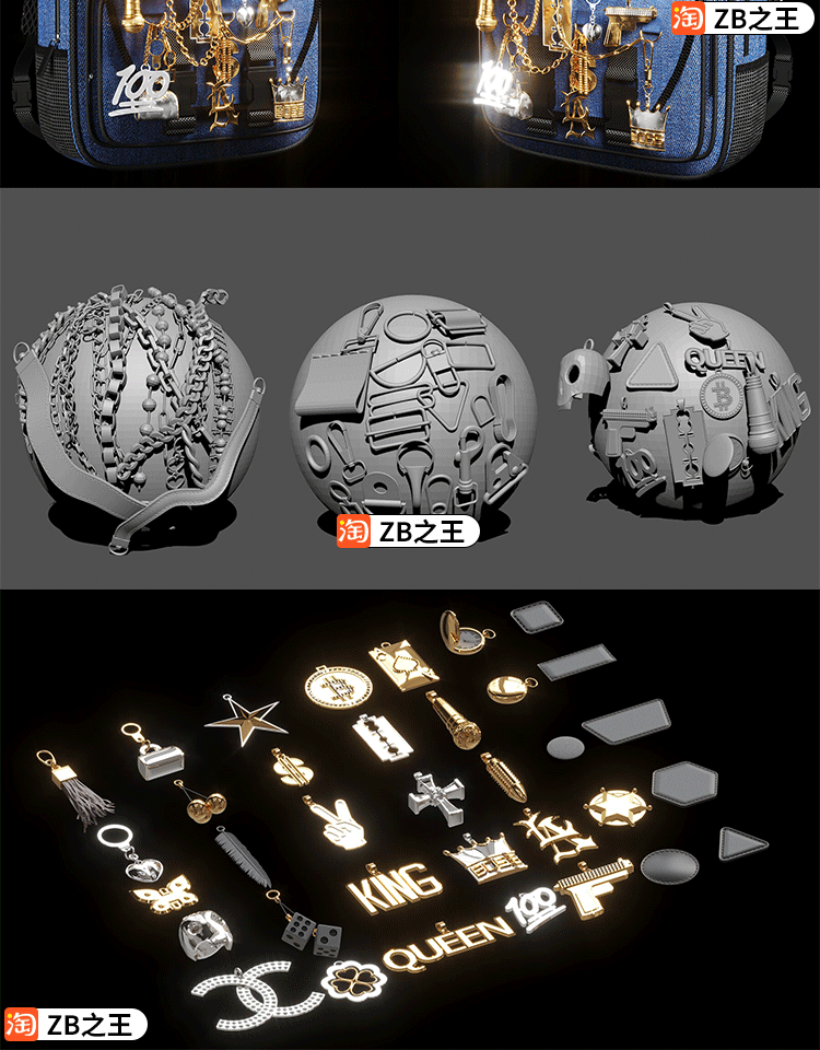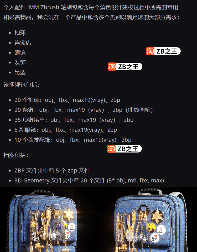 ZBrush笔刷ZB素材30款背包口袋腰包挎包装饰包IMM笔刷FBX模型OBJ