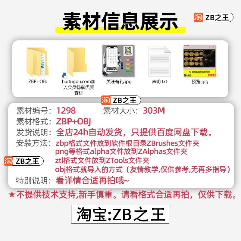 ZBrush素材40款绳索装饰带IMM笔刷ZBP格式ZB建模3D雕刻带OBJ模型