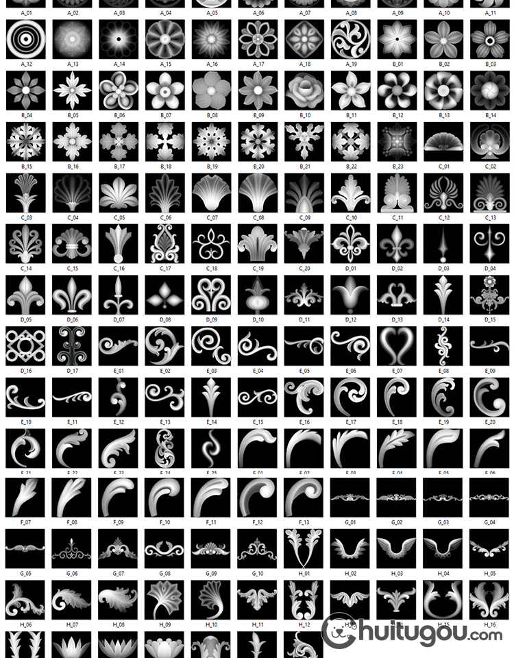 ZBrush高度图黑白贴图 巴洛克欧式 装饰花纹合集Alpha贴图4740张