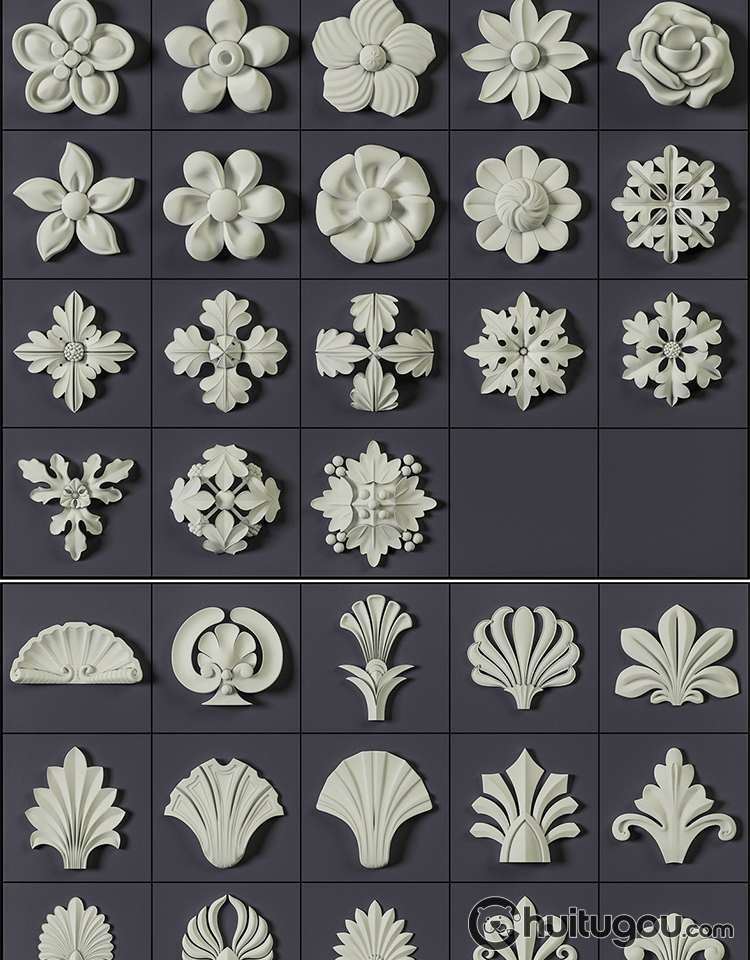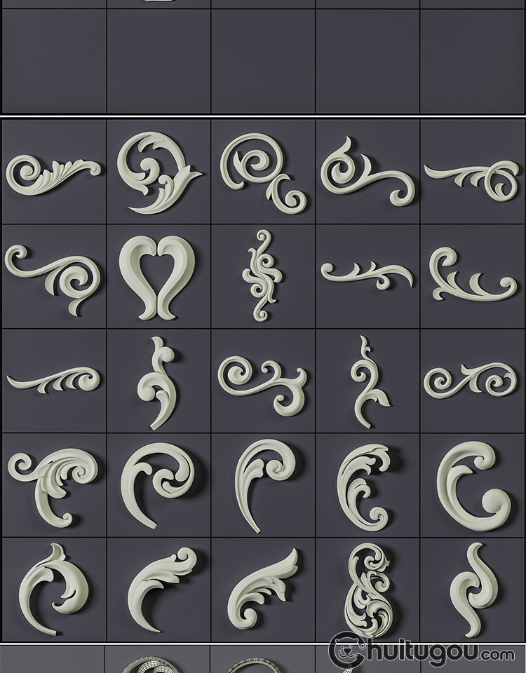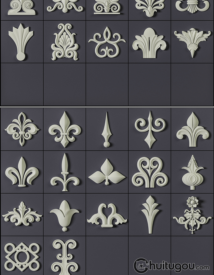 Zbrush欧式装饰花纹雕花模型ZB笔刷Alpha纹理贴图fbx obj dwg素材