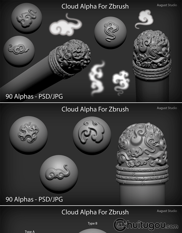 中国风古风祥云alpha纹理贴图 ZB云纹装饰花纹雕刻psd格式jpg素材