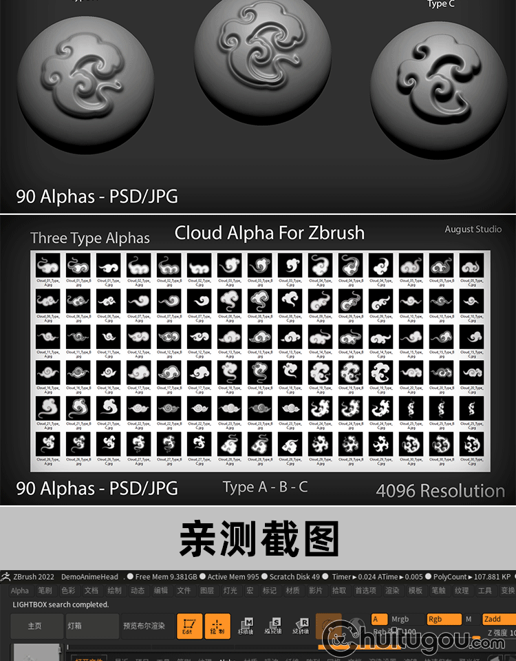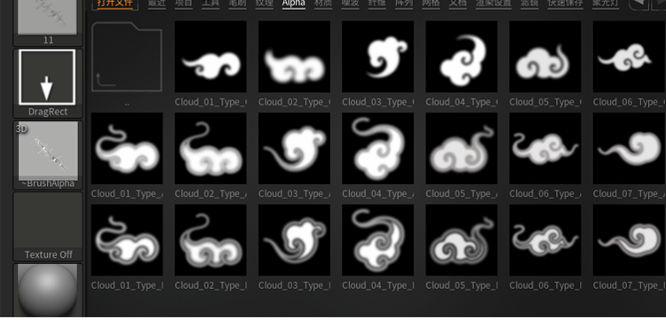 ZBrush风格化笔刷包毛发皮毛岩石alpha无缝纹理贴图ZB雕刻zbp素材