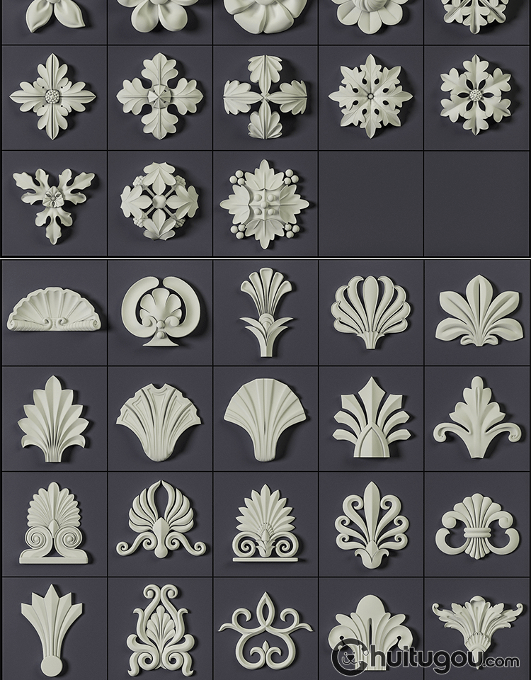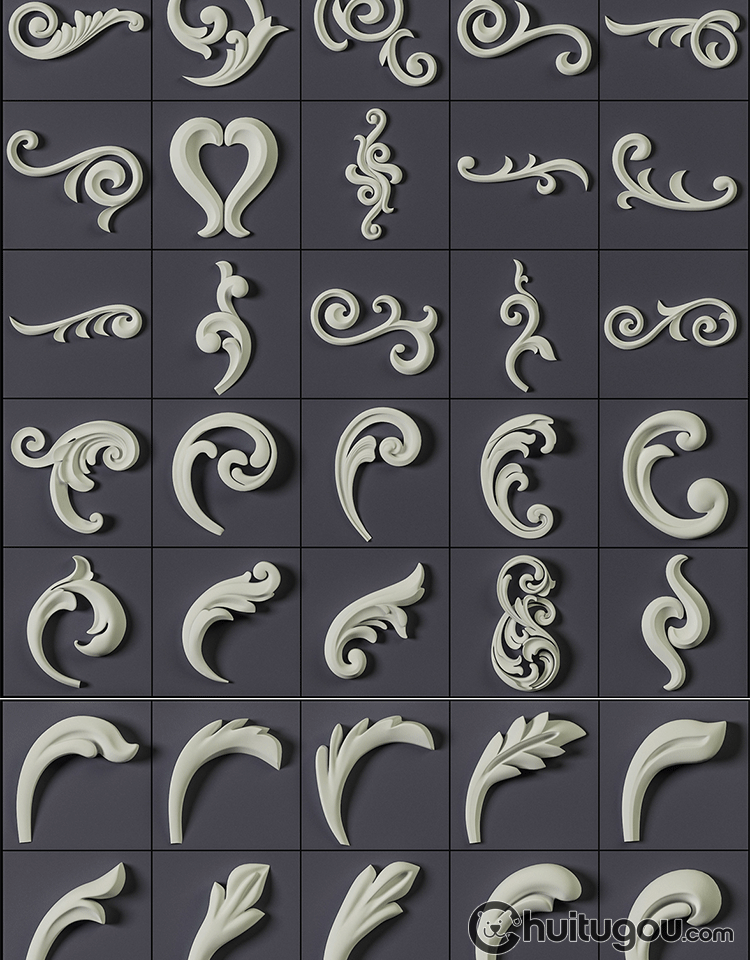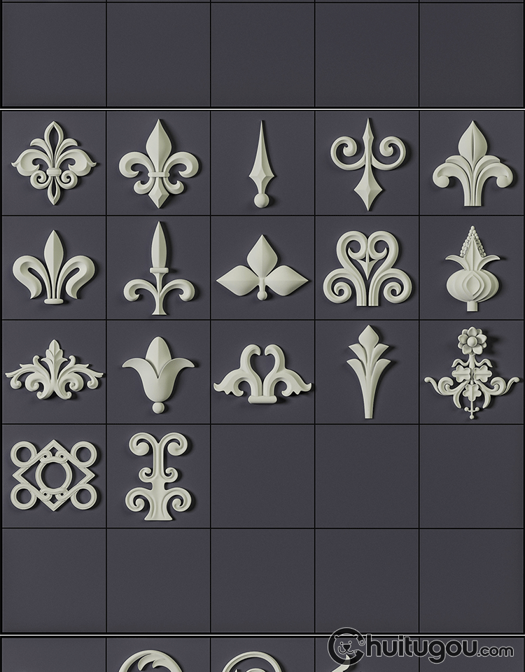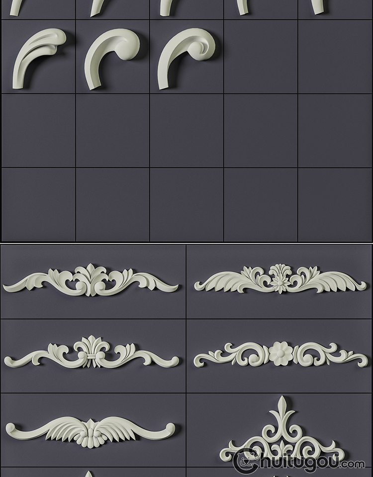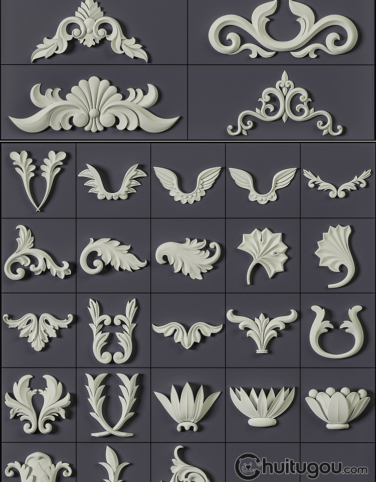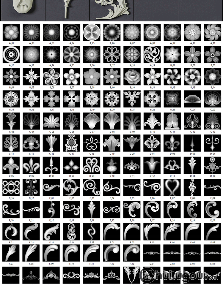 Zbrush欧式装饰花纹雕花模型ZB笔刷Alpha纹理贴图fbx obj dwg素材
